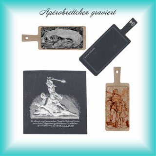 Apéro- und Schneidbrettchen aus Bambus und Schiefer, mit den exquisiten Gravuren?